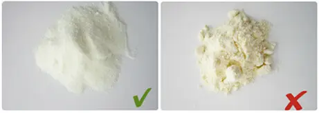 以下兩種奶粉,右邊的奶粉結塊嚴重,而左邊的才是粉質細膩的好奶粉哦。