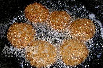 4、鍋中放油燒至七成熱,下丸子炸約五分鐘
