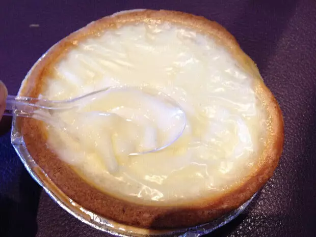 燙燙的蛋撻拿小勺子挖掉中間的一點蛋然後放一點冰淇淋進去人間美味啊!