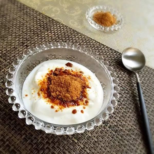 紅糖除了具備糖的功能外,還含有維生素和微量元素,如鐵、鋅、錳、鉻等,營養成分比白砂糖高很多。在優酪乳中加入2克紅糖,攪拌均勻後即可飲用,這樣喝法可以改善腸內環境,緩解便秘,還有助於體內脂肪的燃燒,達到減肥效果。
