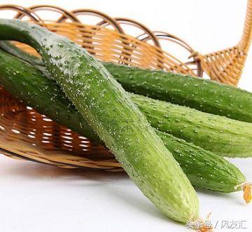 黃瓜是屬於一種鹼性的食物,而且黃瓜含有豐富的維生素C、鉀鹽和多量的水分。中醫認為黃瓜有除熱、利水、解毒、生津止渴的作用。可幫助排泄出多餘的尿酸,吃生或作涼拌菜皆可。