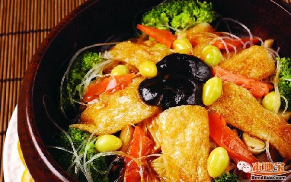 主要材料:香菇,猴頭菇,松茸,木耳,雲耳,烤夫,豆腐乾,蘆筍,胡蘿蔔,百果,玉米筍,腐竹