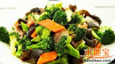 2、鍋中再放油燒熱,依次放入香菇、西蘭花、少許胡蘿蔔、鹽、少許醬油,胡椒粉,炒勻出鍋即成。