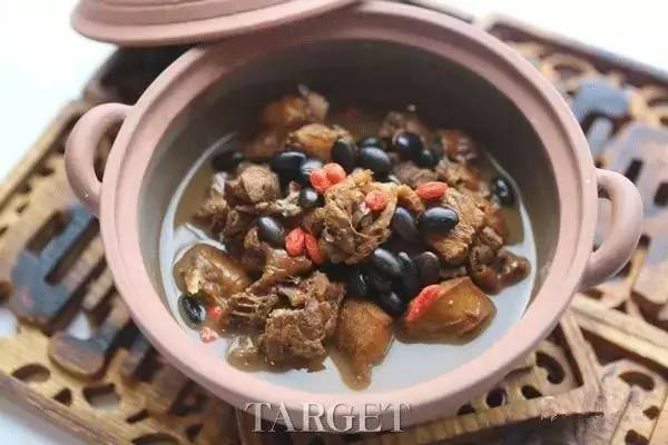 蓋上鍋蓋燉5分鐘後放入熱水,用大火燉開後,放料酒,改為文火燉。待肉六成熟時,將蘿蔔倒鍋內,放鹽,把肉和蘿蔔燉爛熟即可。 羊肉+黑豆 羊肉和黑豆都是富含蛋白質的食材,但它們的來源不同,兩者一起燉煮,其中的動物性蛋白質和植物性蛋白質能夠氨基酸互補,更有利於蛋白質的利用;